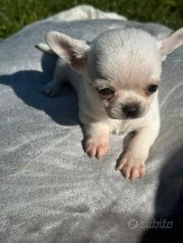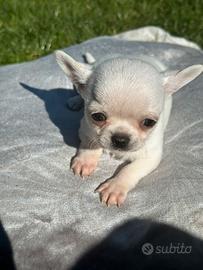 Grisu'cucciolo chihuahua bianco pelo corto di 2 mesi genitori di mia proprietà il cucciolo verrà ceduto con vaccini microcip iscrizione anagrafe canina per contatti watsup