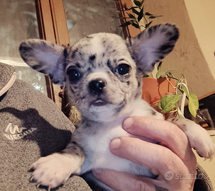 Maschietto disponibile color Merle silver, portatore del gene marrone e pelo lungo in quanto la mamma è Merle marrone a pelo lungo