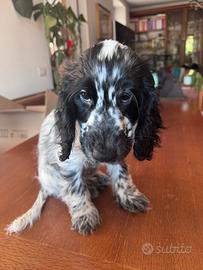 Cucciolo maschio di Cocker Spaniel nato il 09/02/2025. Viene venduto sterminato, con microchip e 2/3 vaccinazioni. Colore blue roano. Per info e prezzo scrivere in chat, possibilità di vederlo!