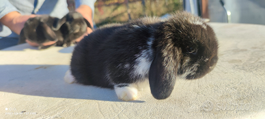 Bellissimo cucciolo di due mesi di coniglio ariete.