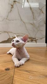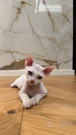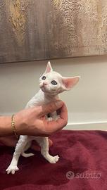 Presso l'allevamento amatoriale Lo Zaffiro, da una cucciolata nata il 15/09, è disponibile un cucciolo di Devon Rex, maschio, di colore bianco.
