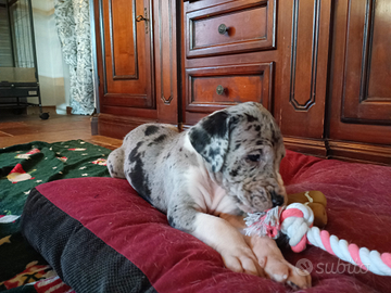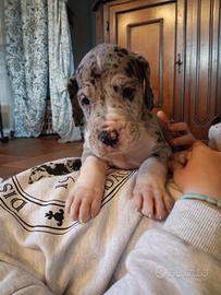 Disponibile da fine dicembre cucciolo di Alano merle (arlecchino a fondo grigio).