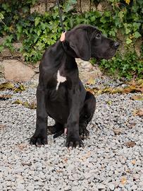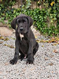 Disponibile da subito maschio di Alano nero. Il cucciolo ha due mesi e mezzo. Ha già effettuato 2 vaccinazioni e profilassi per ecto ed endoparassiti. Genitori visibili. Genitori esenti cardiopatie e patologie genetiche scheletriche.