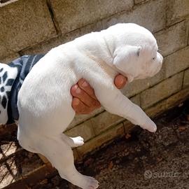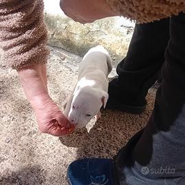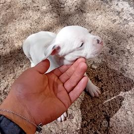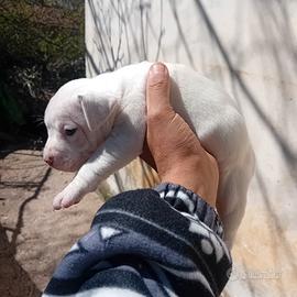 Cedo cucciolo di amstaf bianco femmina il cucciolo viene ceduto a 45 giorni per ora ne ha 30