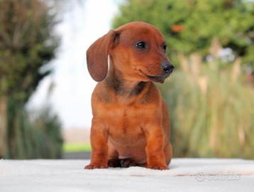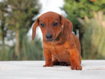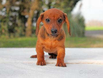 Zoran (nome indicativo) è questo adorabile cucciolo maschio di Bassotto fulvo di 2 mesi di età. Allegro, sveglio e pieno di energia, ha il classico spirito da Bassotto: piccolo di statura ma grande di personalità. Con la sua dolcezza saprà conquistarvi in un attimo.
