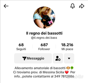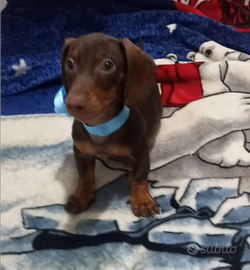 Disponibile cucciolo di bassotto choco tan, gia compiuti 60 giorni, sara ceduto sverminato, con vaccini, antiparassitario, e libretto sanitario, per info potete contattarmi al 349 7812886. Vi invito a seguire la mia pagina tik.tok ultima foto, mentre qui su subito.it potete trovare le mie recensioni e farvi un idea con cui interagite. Prezzo 1200. Chiamate se interessati...
