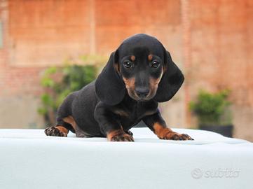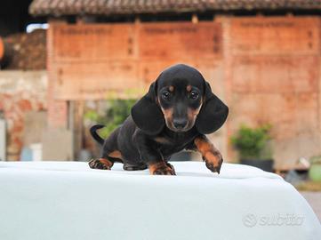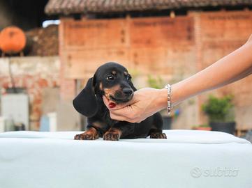 Pronto per trasferirsi in una nuova casa questo meraviglioso cucciolo di Bassotto. Maschietto di 2 mesi di età, si chiama William (nome indicativo). Fisicamente è un cucciolo bellissimo e caratterialmente è irresistibile: dolce, simpatico e sempre pronto al divertimento.