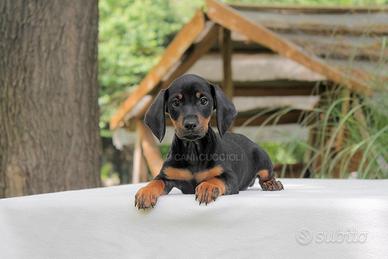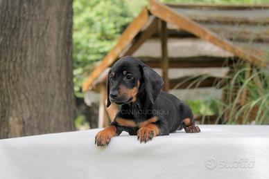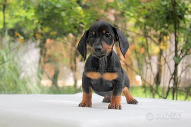 Questo piccolo maschietto di Bassotto è alla ricerca della sua nuova famiglia. Ha 3 mesi di età e si chiama Haku (nome indicativo). Il suo mantello è nero focato. È un cucciolo allegro, gioioso e affettuoso, che mostra già le migliori caratteristiche tipiche della sua razza.