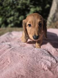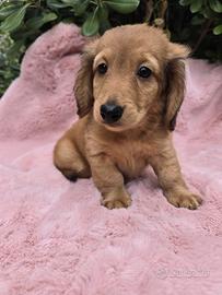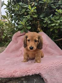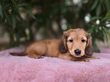 Un adorabile cucciolo di Bassotto Tedesco Nano a pelo lungo di rara bellezza: