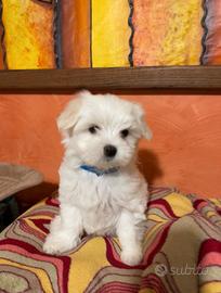 Cedo ultimo cucciolo maschio di una bellissima cucciolata di cani razza Maltese .Nato il 30 gennaio. Genitori visibili in casa, mamma con pedigree, padre di razza ma senza pedigree. Il cucciolo ha già il microchip, prima vaccinazione e sverminazione. Il cucciolo è molto bello, lo potete vedere dalle foto.