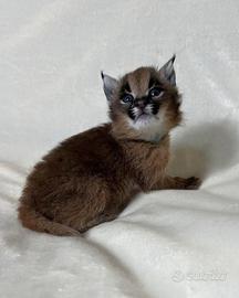 Siamo lieti di presentarvi la nostra magnifica cucciolata di caracal, nati nel nostro appassionato e specializzato programma di allevamento. Da genitori accuratamente selezionati per bellezza, temperamento e conformità allo standard di razza, questi cuccioli mostrano già caratteristiche straordinarie: un elegante mantello maculato, zampe lunghe e slanciate e un aspetto selvaggio e unico che incarna il nobile spirito del caracal. I cuccioli vengono allevati in un ambiente sano, sicuro e stimolante che favorisce la loro socializzazione e il loro sviluppo. Vengono gradualmente abituati alla presenza umana per garantire un comportamento equilibrato.