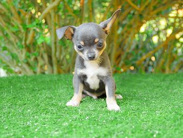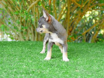 Questo piccolo Chihuahua è subito pronto per andare in una nuova casa. Si chiama Squiddi (nome indicativo). Maschietto di 2 mesi di età, di colore nero-focato. Ha un carattere vivace e allegro. Ama giocare e stare vicino ad altri cuccioli o alle persone. Vi sorprenderà con il modo in cui saprà ricambiare le vostre coccole e i vostri baci.