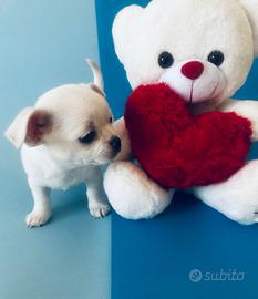 Ultimo cucciolo colore raro ( bianco totale) di Chihuahua di due mesi, maschio , cerca la brava mamma o papà