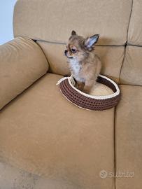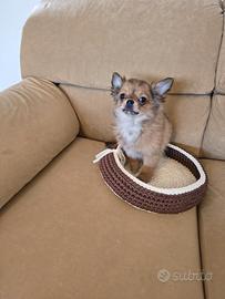 Vendo bellissimo cucciolo di chihuahua pelo lungo di quattro mesi con tutte le vaccinazioni, certificato di buona salute, microchip, pedigree con affisso già arrivato dall' ente nazionale cinofilo italiano, e con analisi delle feci negativo sia per parassiti normali che per giardia. Genitori visibili di mia proprietà. Cucciolo con ottima personalità,molto gioioso .Ottimo per compagnia e per chi vuole allevare. Per info 3281520695