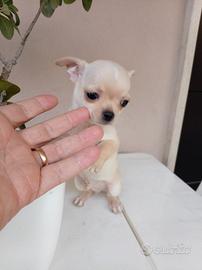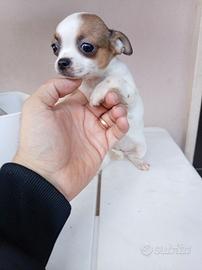 Vendo cuccioli di Chihuahua toy In ordine di foto Femmina mantello bianco e marrone euro 650,00 Maschio mantello beige e bianco euro 650,00 Femmina mantello bianco e marrone euro 550,00 Femmina mantello bianco e marrone euro 550,00 I cuccioli hanno 70 giorni, pronti per essere ceduti, con libretto veterinario, 2 sverminazioni, primo vaccino e microchip Genitori Chihuahua di mia proprietà e visibili Non hanno pedigree Mando foto e video dopo contatto telefonico o wathapp
