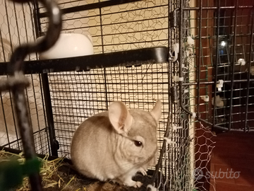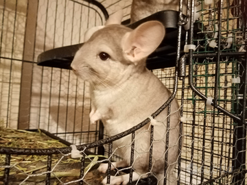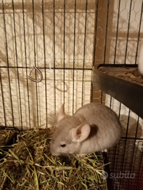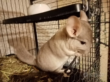 Cucciolo di cincillà beige chiaro (avorio) , maschio, nato il 30 settembre, ha quasi tre mesi e ha terminato completamente lo svezzamento.