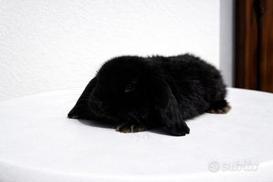 Cucciolo di coniglio ariete nano nero