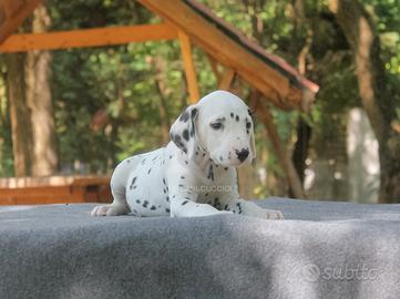 Questo piccolo atleta è pronto per essere il vostro nuovo compagno di vita. Si chiama Homer (nome indicativo), bellissimo cucciolo di Dalmata bianco e nero di 60 giorni di età. Nato nel nostro centro cinofilo, il piccolo oltre ad essere bellissimo ha anche un carattere vivace, intelligente e sopratutto giocherellone.