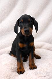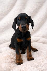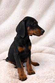Lui è Draco (nome indicativo), questo maschietto di Dobermann nero focato di 2 mesi di età, subito pronto. Ha uno sguardo deciso e curioso, ama stare vicino alle persone e farsi notare. È un cucciolo sicuro di sé, ma anche molto affettuoso.
