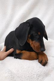 Lui è Brady (nome indicativo), maschietto di Dobermann nero focato di 2 mesi di età. Allegro e socievole, si ambienta facilmente e adora sopratutto le coccole. Porta allegria e felicità in ogni momento della giornata.