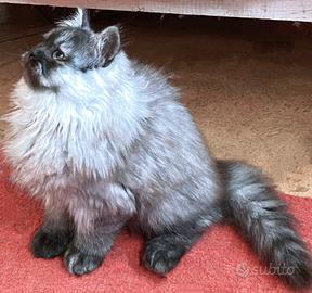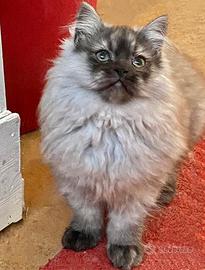 Questo bel gattino doll face molto giocherellone dalla bellissima colorazione blue smoke e' nato dai miei gatti persiani normotipici.