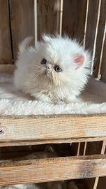 Disponibile dolcissimo e bellissimo cucciolo di gatto persiano bianco nato il 23/02. Figlio di genitori testati fiv, felv e pkd negativo, si cede con doppio vaccino, doppio vermifugo, antiparassitario e libretto sanitario. Il cucciolo cresciuto in casa con amore, abituato alla lettiera e al tiragraffi. Per info, foto e video contatti whatsapp al 3383707990 NO PERDITEMPO Può raggiungere altre regioni in sicurezza. NON È IN REGALO