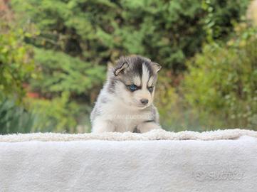 Questa meraviglia dagli occhi azzurri è pronta per essere accolta in una nuova famiglia. Si chiama Anker (nome indicativo) ed è uno splendido maschietto di Siberian Husky di 2 mesi di età, nato nel nostro allevamento. Affettuoso e molto socievole, adora trascorrere il suo tempo in compagnia e condividere momenti di gioco e coccole..