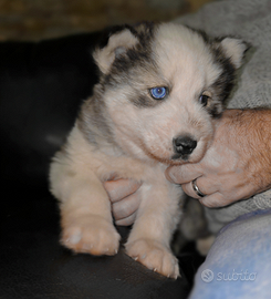 Disponibile cucciolo di husky di quasi 3 mesi, il cucciolo è disponibile fin da subito, cucciolo di husky con genitori visibili essendo nostri, maschio grigio e bianco con occhi eterocromi, molto giocherellone e bravo, abituato a cani grandi e piccoli ed anche con bambini.