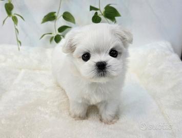 Simpatica ed irresistibile cucciola di maltese femmina di 2 mesi vi aspetta per darvi tutto il suo amore! Con il loro candido pelo anallergico non soggetto a muta, le loro ridotte dimensioni, la capacitá di donare affetto e tenerezza a chiunque, i maltesi sono cagnolini adatti a tutta la famiglia e siamo sicuri che scioglieranno il cuore anche a voi! La cucciola, provvista di Pedigree ENCI, viene ceduta completamente vaccinata e sverminata, completa di microchip, iscrizione al registro anagrafico nazionale e visita veterinaria certificata. Disponibili anche sorelline e fratellini. Genitori sempre visibili in allevamento. Assieme alla cucciola verrà inoltre fornito un corredo di accessori omaggio ed un fascicolo di consigli che vi permetterà di iniziare fin da subito a prendervi cura di lei al meglio. E ovviamente contate su di noi per assistenza durante tutta la crescita! Possibilità di pagamento in comode rate. Per qualsiasi informazione telefonateci al Ci troviamo a: 15 min da Parma 40 min da Bologna 1h da Verona e da Mantova 1h e 20 da Milano 1h e 40 da Firenze