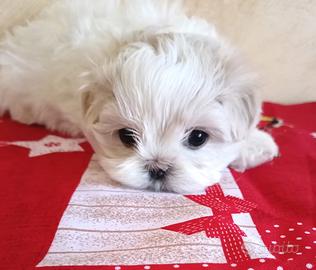 Disponibili cuccioli di maltese coreano puro, figlio di campioni con genitori visibili e pedigree. Nati il 5 febbraio 2025.