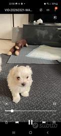 Cucciolo di maltese, nato il 10 febbraio, abituato a fare i bisogni sulla traversina. Viene consegnato con 2 sverminazioni e il primo vaccino già effettuato il 28 marzo ,tutto scritto sul libretto. È svezzato, vivace e giocherellone. È adorabile pronto ad essere accolto per dare e ricevere amore . Contattatemi se veramente interessati, genitori visibili tramite foto .