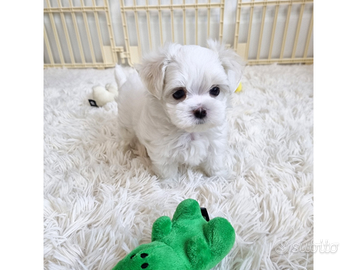 Simpatico cucciolo di maltese maschio di 2 mesi e mezzo vi aspetta per darvi tutto il suo amore! Con il loro candido pelo anallergico e le loro ridotte dimensioni,capaci di donare affetto e tenerezza a chiunque, i maltesi sono cagnolini adatti a tutta la famiglia e siamo sicuri che scioglieranno il cuore anche a voi! Il cucciolo viene ceduto completamente vaccinato e sverminato, completo di microchip, iscrizione al registro anagrafico nazionale e visita veterinaria certificata. Disponibili anche sorelline e fratellini. Assieme al cucciolo verrà fornito un corredo di accessori omaggio ed un fascicolo di consigli che vi permetterà di iniziare fin da subito a prendervi cura di lui al meglio. E ovviamente contate su di noi per assistenza durante tutta la crescita! Possibilità di pagamento in comode rate. Per qualsiasi informazione telefonateci al