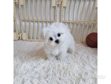 Tenero e simpaticissimo cucciolo di maltese maschio di 2 mesi vi aspetta per darvi tutto il suo amore! Con il loro candido pelo anallergico non soggetto a muta, le loro ridotte dimensioni, la capacitá di donare affetto e tenerezza a chiunque, i maltesi sono cagnolini adatti a tutta la famiglia e siamo sicuri che scioglieranno il cuore anche a voi! Ogni cucciolo viene ceduto completamente vaccinato e sverminato, completo di microchip, iscrizione al registro anagrafico nazionale e visita veterinaria certificata. Disponibili anche sorelline e fratellini. Genitori sempre visibili in allevamento. Assieme al cucciolo verrà inoltre fornito un corredo di accessori omaggio ed un fascicolo di consigli che vi permetterà di iniziare fin da subito a prendervi cura di lui al meglio. E ovviamente contate su di noi per assistenza durante tutta la crescita! Possibilità di pagamento in comode rate. Per qualsiasi informazione telefonateci al Ci troviamo a: 15 min da Parma 40 min da Bologna 1h da Verona e da Mantova 1h e 20 da Milano 1h e 40 da Firenze