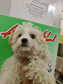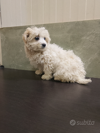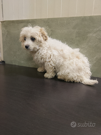 Vendo cucciolo di Maltipoo maschio di circa 3 mesi e mezzo, adatto anche a bambini piccoli essendo molto affettuoso e coccolone già dal primo momento. Oltre al cucciolo nel prezzo sono inclusi il neccessario per iniziare a prendersene cura.
