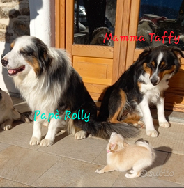Ultimo cucciolo di pastore australiano tricolor black nato il 10 dicembre e disponibile dal 10 febbraio.... verrà ceduto con chip visita veterinaria ed esame feci...