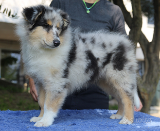 Disponibile stupendo cucciolo maschio Blue merle nato il 30 luglio. Cresciuto in ambiente familiare a stretto contatto con altri cani e bambini. Ottimo carattere e genealogia. Entrambi i genitori visibili. Sarà consegnato con regolare iscrizione all' anagrafe canina nazionale, trattamenti antiparassitari e vaccinazioni, visita oculistica certificata e pedigree. Chiamare se interessati