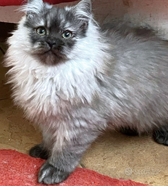 Questo bel gattino doll face molto giocherellone e dalla bellissima colorazione Blue Smoke è figlio dei miei gatti persiani normotipo