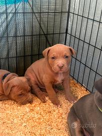 Disponibile ultimo cucciolo di American Pitbull terrier con pedigree MCKCI in standard Ukc. Viene consegnato a 60g ,nato il 26/02 consegna 26/04, completo di Microchip vaccino libretto sanitario sverminaizioni certificato di buona salute e pedigree che attesta il cane di razza. Per maggiori informazioni potete contattarmi al seguente numero di cellulare 3517744378