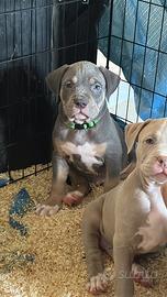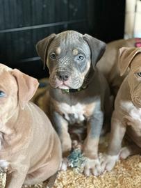 Disponibile ultimo maschio Tricolor blu di American Pitbull terrier con pedigree MCKCI in standard Ukc. Viene consegnato a 60g completo di Microchip vaccino Libretto sanitario sverminaizioni certificato di buona salute e pedigree che attesta il cane di razza. Per maggiori informazioni potete contattarmi al seguente numero di cellulare 3517744378. Nato il 26/02 consegna 26/04