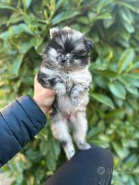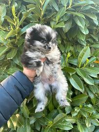 Cucciolo Pomerania Colorazione esotica merle molto particolare Genitori visibili entrambi importanti dalla Russia Il cucciolo verrà consegnato con Primo vaccino, Sverminazione, Libretto sanitario , Certificato di buona salute Possibilità di consegna in tutta Italia Per maggiori informazioni chiamate