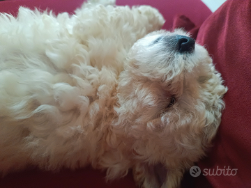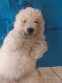Cucciolo maschio di barboncino Genitori Toy e nano Colore bianco Nato il 7 aprile già svezzato ed abituato alle traverse Molto dolce 600€