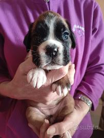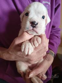 Disponibili cuccioli di razza boxer nati il 13/03/2026 due maschi bianchi tre femmine bianche e due femmine fulve saranno cedute a 60 gg di vita con pedegree ,microchip ,3 sverminazioni,primo vaccino,visita del veterinaria che attesta che il cucciolo sia sano e rilascio del libretto sanitario. Esami enci ufficali e deposito DNA esenti a displasia e problemi cardiaci. Ottima linea di sangue un buon carattere e adatti anche per famigli che anno dei bambini ,o deigli amici a 4 zampe . SONO DISPONIBILE A QUALSIASI ORA PER QUALSIASI DOMANDA VOLETE SAPERE CONTATTATEMI SU WHATSAPP X FOTO . DONATO 345 846 1195