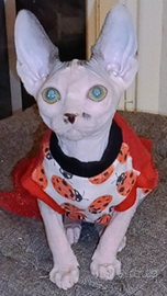 Ciao ho un allevamento in Liguria e questa è una mia cucciola che sarà pronta tra poco a dicembre al compimento del terzo mese di vita. La cedo con contratto da compagnia pedigree Afef ciclo vaccinale completo certificato buona salute veterinario sverminato kit cucciolo comprensivo di cibo e abiti fatti su misura per lei da me. Tutti i miei gatti così come i suoi genitori sono testati geneticamente attraverso il prelievo del sangue per hcm CMS Pra le malattie che colpiscono spesso lo Sphynx. Ovviamente sono tutti negativi e non sono portatori di queste malattie ne loro ne i figli. Comunque darò tutti i test genetici e gli ecocardio hcm annuali negativi e fiv e felv negativo dei genitori. Contattami al 3317947981 possibilità di pagamento rateale.