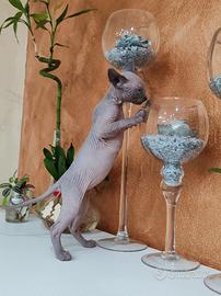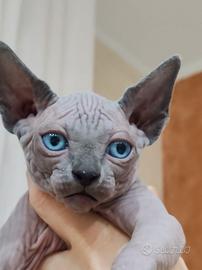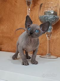 Dal 22 Gennaio è disponibile un maschietto simil Sphynx (no pedigree) colore Blue Mink occhi azzurri/acqua marina.