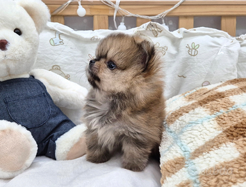 Simpaticissimo tenero cucciolo di spitz maschio di 2 mesi e mezzo vi aspetta per darvi tutto il suo amore! Con il loro folto e morbidissimo pelo, le loro ridotte dimensioni e l'indole allegra e coraggiosa, gli spitz sono cagnolini adatti a tutta la famiglia capaci di conquistare chiunque al primo sguardo (e alla prima scodinzolata)! Il cucciolo viene ceduto completamente vaccinato e sverminato, completo di microchip, iscrizione al registro anagrafico nazionale e visita veterinaria certificata. Disponibili anche sorelline e fratellini. Assieme al cucciolo verrà fornito un corredo di accessori omaggio ed un fascicolo di consigli che vi permetterà di iniziare fin da subito a prendervi cura di lui al meglio. E ovviamente contate su di noi per assistenza durante tutta la crescita! Possibilità di pagamento in comode rate. Per qualsiasi informazione telefonateci al