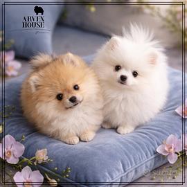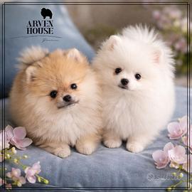 Cucciolo di Spitz nano tedesco (Pomerania) disponibile subito, allevato presso Arven House. Ogni cucciolo viene seguito con estrema attenzione nei minimi dettagli, sia dal punto di vista morfologico che nella crescita, e valorizzato con foto professionali. Allevamento professionale ENCI Genitori selezionati e testati Pedigree ENCI Microchip e documenti ASL Alta qualità morfologica Oleggio (Malpensa) Anna - Allevamento Arven House