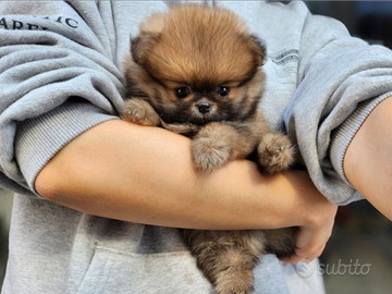 Tenerissimo cucciolo di spitz maschio di 2 mesi e mezzo vi aspetta per darvi tutto il suo affetto! Con il loro folto e morbidissimo pelo, le loro ridotte dimensioni e l'indole allegra e coraggiosa, gli spitz sono cagnolini adatti a tutta la famiglia capaci di conquistare chiunque al primo sguardo (e alla prima scodinzolata)! Il cucciolo viene ceduto completamente vaccinato e sverminato, completo di microchip, iscrizione al registro anagrafico nazionale e visita veterinaria certificata. Disponibili anche sorelline e fratellini. Assieme al cucciolo verrà fornito un corredo di accessori omaggio ed un fascicolo di consigli che vi permetterà di iniziare fin da subito a prendervi cura di lui al meglio. E ovviamente contate su di noi per assistenza durante tutta la crescita! Possibilità di pagamento in comode rate. Per qualsiasi informazione telefonateci al