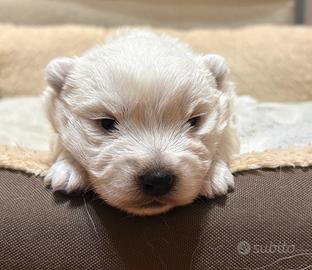 Bellissimo e dolcissimo cucciolo maschio di West Highland White Terrier. Nato il 17/01 e disponibile a partire dal 20/03. Cedesi con vaccinazione, microchip, ciclo completo di sverminazioni, visita veterinaria e pedigree ENCI Prezzo 2000