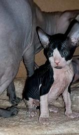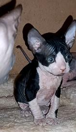 È disponibile da metà febbraio un maschietto di razza donskoy sphynx. Il cucciolo sarà consegnato dopo aver compiuto 90 giorni con libretto veterinario, vaccinato, con chip inserito, pedigree WCF e passaggio di proprietà. Entrambi i genitori sono visibili. Testati per Felv Fiv, Herpes virus e ecocardiogramma. Il cucciolo è abituato a stare con altri animali e bambini.