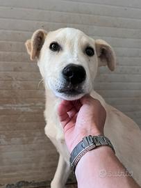 Questo cucciolo è stato trovato da solo, perso e affamato, in mezzo ad una campagna, chiedeva letteralmente aiuto e fortunatamente abbaiando ha segnalato la sua presenza. È un Cucciolotto timido ma dolcissimo, che ha bisogno di una famiglia. Attualmente è stato portato in canile dove sta completando l'iter sanitario, ma è importante per lui trovare una casa che gli faccia conoscere l'amore vero. È una futura taglia media, maschio, trattato per pulci, zecche e parassiti interni, ceduto con vaccino e microchip solo come membro della famiglia